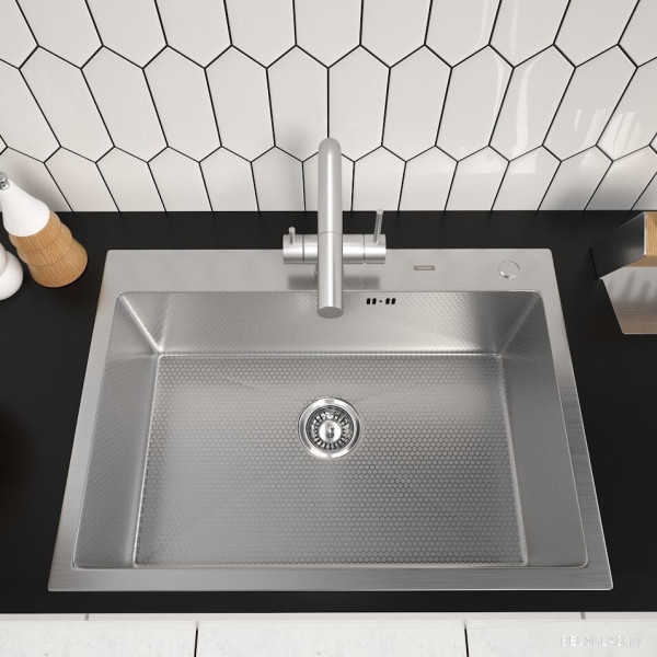 ARFEKA ECO AR 700*500 SATIN DECOR - врезная на столешницу, нержавеющая сталь, фактура: с текстурой, размеры: 70x50 см, глубина чаши: 20 см. Оригинальный ARFEKA от производителя подтверждённый сертификатом соответствия.