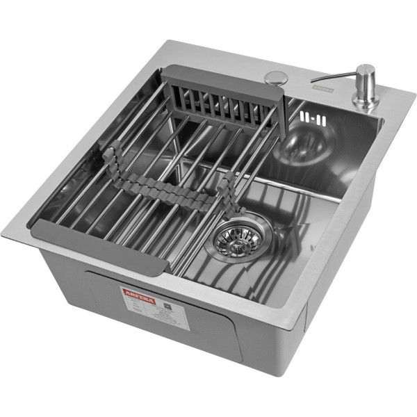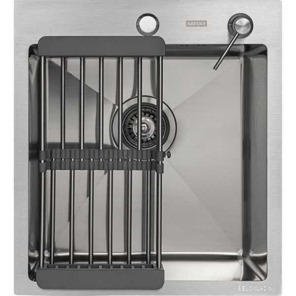 ARFEKA Eco AR мойка 450*500, коландер, дозатор SATIN DECOR MILLET GRAINS - врезная на столешницу, нержавеющая сталь, фактура: с текстурой, размеры: 45x50 см, глубина чаши: 20 см, в шкаф шириной от 50 см. Оригинальный ARFEKA от производителя подтверждённый сертификатом соответствия.