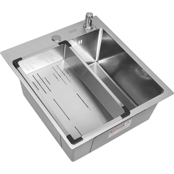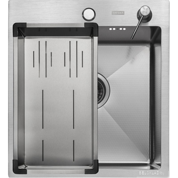 ARFEKA Eco AR мойка 450*500, коландер G, дозатор Satin Decor - врезная на столешницу, нержавеющая сталь, фактура: с текстурой, размеры: 45x50 см, глубина чаши: 20 см, в шкаф шириной от 50 см. Оригинальный ARFEKA от производителя подтверждённый сертификатом соответствия.