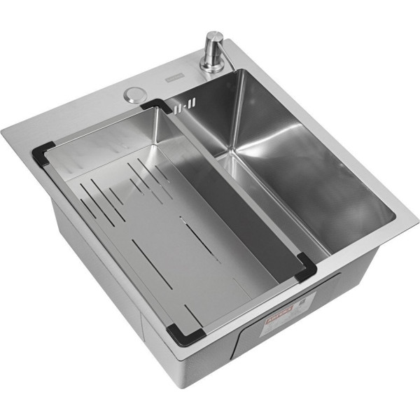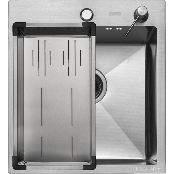 ARFEKA Eco AR мойка 450*500, коландер G, дозатор Satin Decor Millet - врезная на столешницу, нержавеющая сталь, фактура: с текстурой, размеры: 45x50 см, глубина чаши: 20 см, в шкаф шириной от 50 см. Оригинальный ARFEKA от производителя подтверждённый сертификатом соответствия.