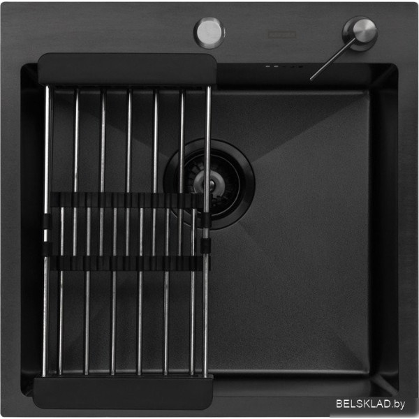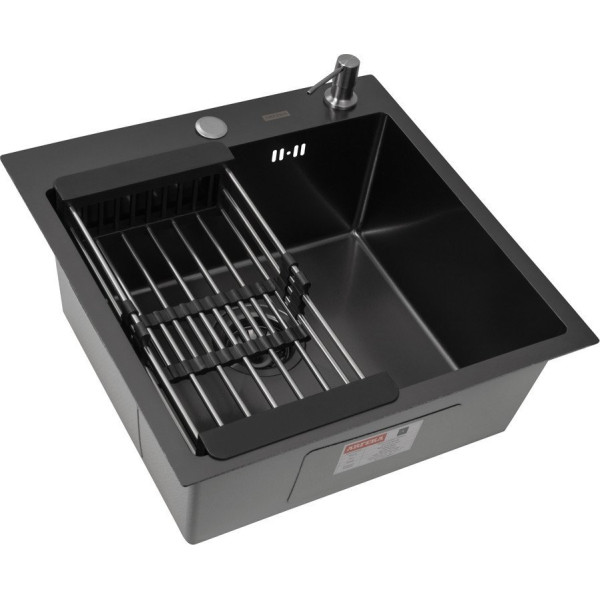 ARFEKA ECO AR мойка 500*500, коландер, дозатор BLACK DECOR VOLCANIC ROCK - врезная на столешницу, нержавеющая сталь, фактура: с текстурой, размеры: 50x50 см, глубина чаши: 20 см, в шкаф шириной от 50 см. Оригинальный ARFEKA от производителя подтверждённый сертификатом соответствия.