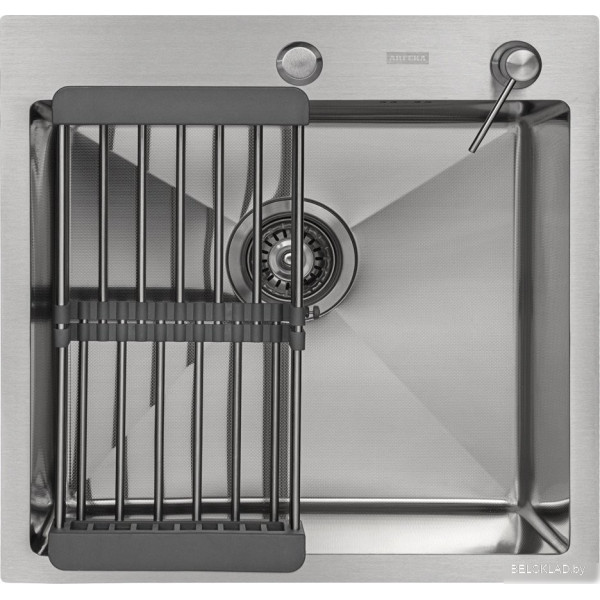 ARFEKA ECO AR мойка 500*500, коландер, дозатор SATIN DECOR MILLET GRAINS - врезная на столешницу, нержавеющая сталь, фактура: с текстурой, размеры: 50x50 см, глубина чаши: 20 см, в шкаф шириной от 50 см. Оригинальный ARFEKA от производителя подтверждённый сертификатом соответствия.