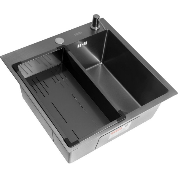 ARFEKA Eco AR мойка 500*500, коландер G, дозатор Black Decor Volcanic - врезная на столешницу, нержавеющая сталь, фактура: с текстурой, размеры: 50x50 см, глубина чаши: 20 см, в шкаф шириной от 50 см. Оригинальный ARFEKA от производителя подтверждённый сертификатом соответствия.