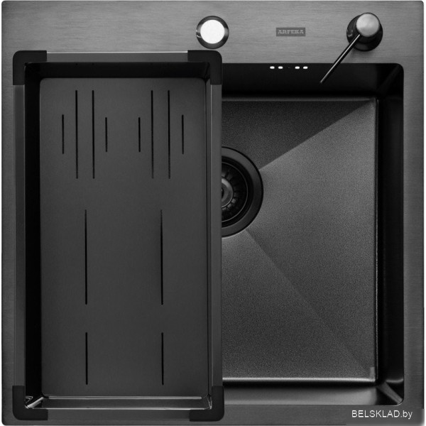 Характеристики и описание «ARFEKA Eco AR мойка 500*500, коландер G, дозатор Black Decor Volcanic»