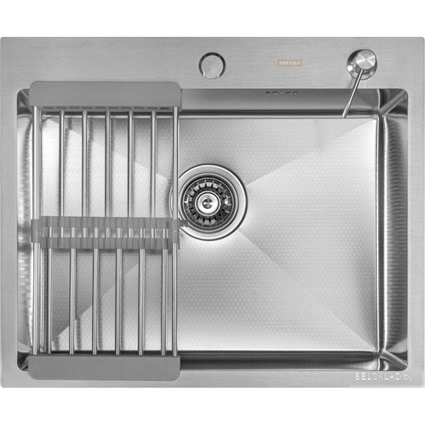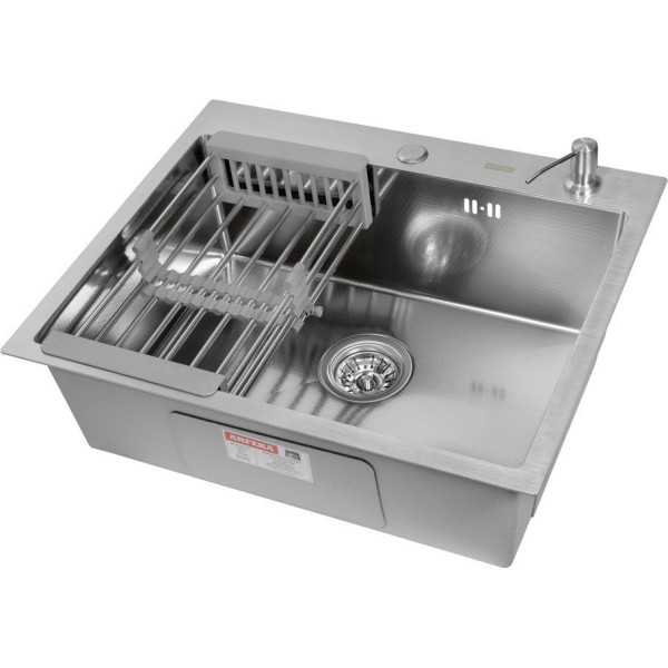 ARFEKA ECO AR мойка 600*500, коландер, дозатор SATIN DECOR - врезная на столешницу, нержавеющая сталь, фактура: с текстурой, размеры: 60x50 см, глубина чаши: 20 см, в шкаф шириной от 60 см. Оригинальный ARFEKA от производителя подтверждённый сертификатом соответствия.