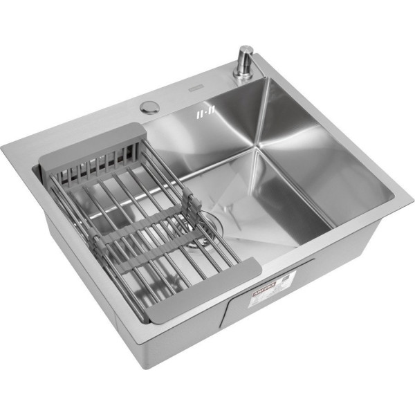ARFEKA ECO AR мойка 600*500, коландер, дозатор SATIN DECOR MILLET GRAINS - врезная на столешницу, нержавеющая сталь, фактура: с текстурой, размеры: 60x50 см, глубина чаши: 20 см, в шкаф шириной от 60 см. Оригинальный ARFEKA от производителя подтверждённый сертификатом соответствия.