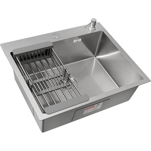 ARFEKA ECO AR мойка 600*500, коландер, дозатор SATIN DECOR VOLCANIC ROCK - врезная на столешницу, нержавеющая сталь, фактура: с текстурой, размеры: 60x50 см, глубина чаши: 20 см, в шкаф шириной от 60 см. Оригинальный ARFEKA от производителя подтверждённый сертификатом соответствия.