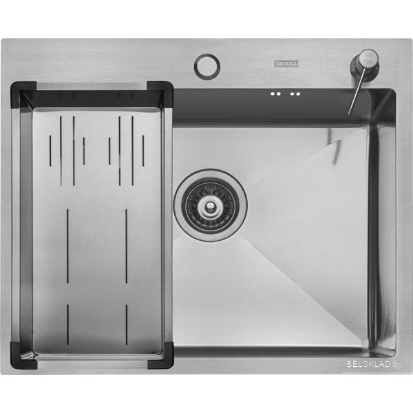 ARFEKA Eco AR мойка 600*500, коландер G, дозатор Satin Decor Millet - врезная на столешницу, нержавеющая сталь, фактура: с текстурой, размеры: 60x50 см, глубина чаши: 20 см. Оригинальный ARFEKA от производителя подтверждённый сертификатом соответствия.