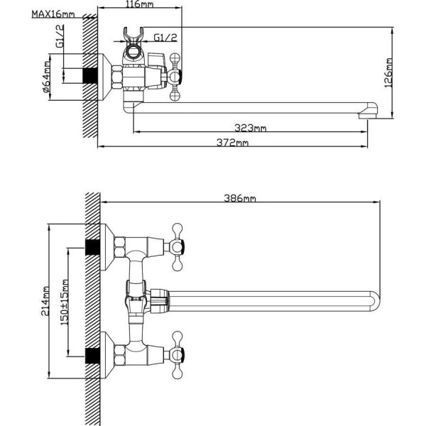 | Длина (вылет) излива | 323 мм |