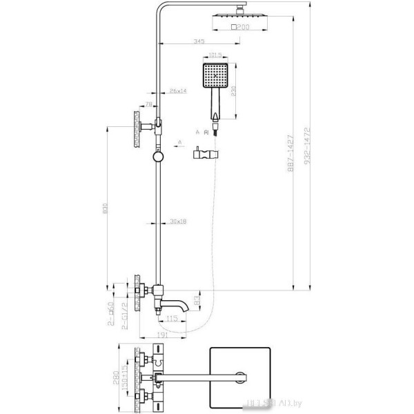 AV Engineering AVTHS2-P42-513A - душевая система (с верхним душем), настенный монтаж, механический смеситель, верхний душ 200 мм, ручной душ 101 мм. Оригинальный AV Engineering от производителя подтверждённый сертификатом соответствия.