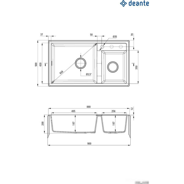 Deante Eridan ZQE T20B (антрацитовый металлик) - врезная на столешницу, искусственный камень, размеры: 50x88 см, глубина чаши: 20 см, в шкаф шириной от 90 см. Оригинальный Deante от производителя подтверждённый сертификатом соответствия.
