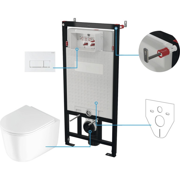Deante Jasmin CDJA6ZPW - подвесной, конструкция: компакт, задний подвод воды, горизонтальный выпуск, двухрежимный слив, с сиденьем, безободковый. Оригинальный Deante от производителя подтверждённый сертификатом соответствия.