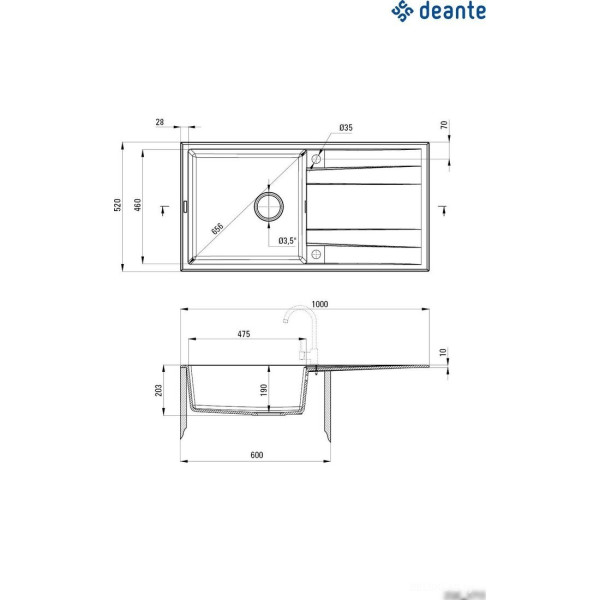 Deante ZQE_N713 - врезная под столешницу, гранит, фактура: матовая, размеры: 52x100 см, глубина чаши: 19 см, в шкаф шириной от 60 см, клапан-автомат. Оригинальный Deante от производителя подтверждённый сертификатом соответствия.