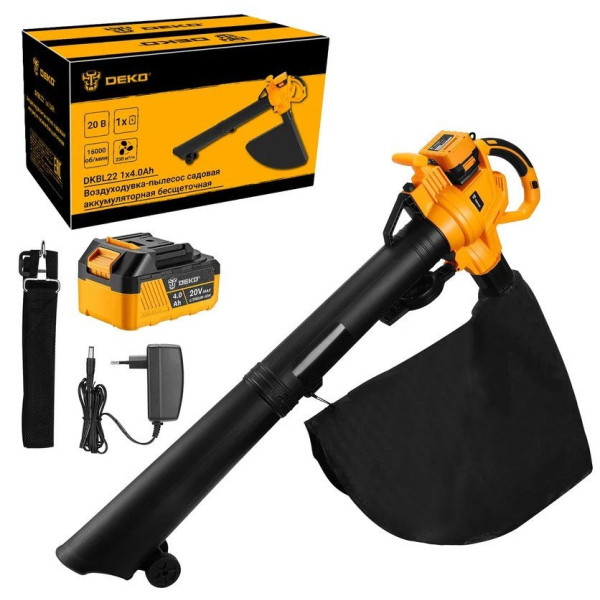 Deko DKBL22 063-4522 (с 1-им АКБ) - функция пылесоса, мешок для сбора мусора, аккумуляторный двигатель, расход воздуха: 3.8 м?/мин, 20 В, 3.9 кг. Оригинальный Deko от производителя подтверждённый сертификатом соответствия.