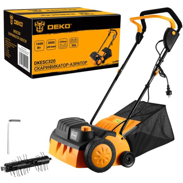 Deko DKESC320 - скарификатор-аэратор, электрический двигатель, 1600 Вт, ширина скашивания: 32 см, мягкий травосборник 30 л. Оригинальный Deko от производителя подтверждённый сертификатом соответствия.