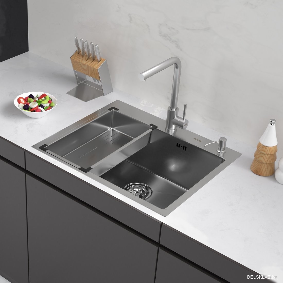 Кухонная мойка ARFEKA Eco AR мойка 600*500, коландер G, дозатор Satin Decor Millet