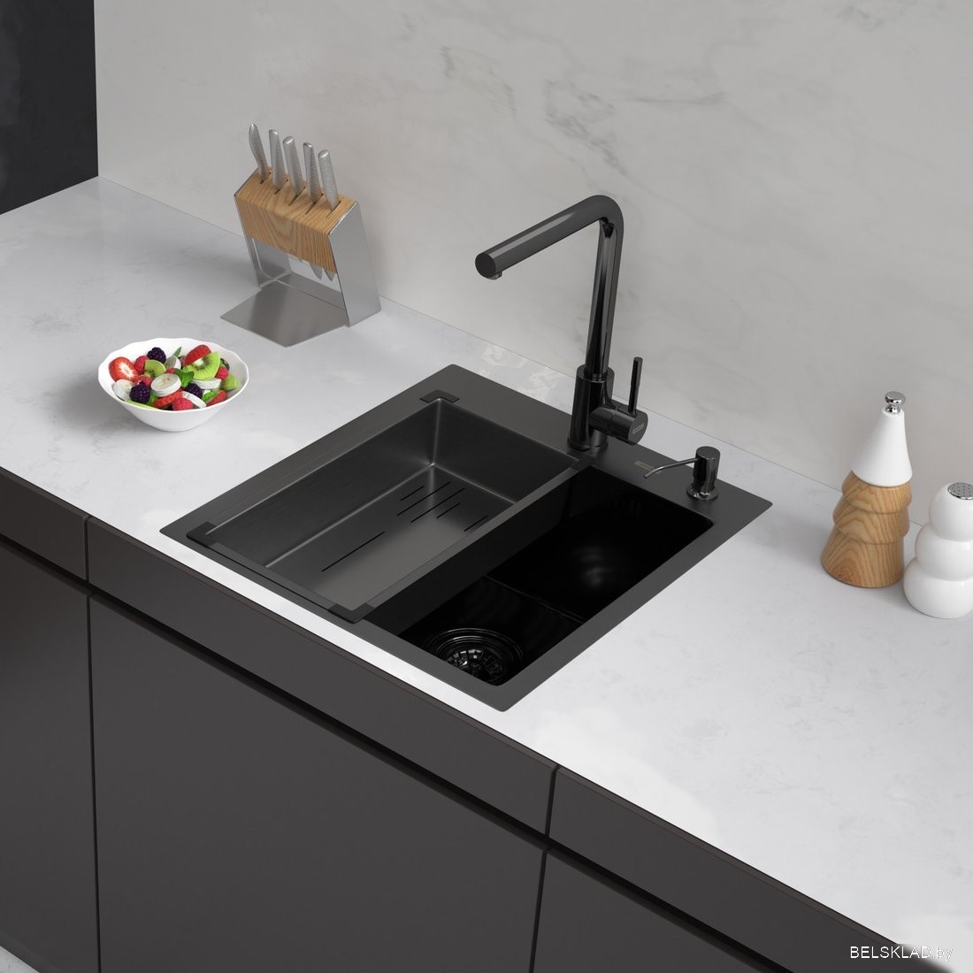 Кухонная мойка ARFEKA ECO AR мойка 500*500, коландер, дозатор Black Decor