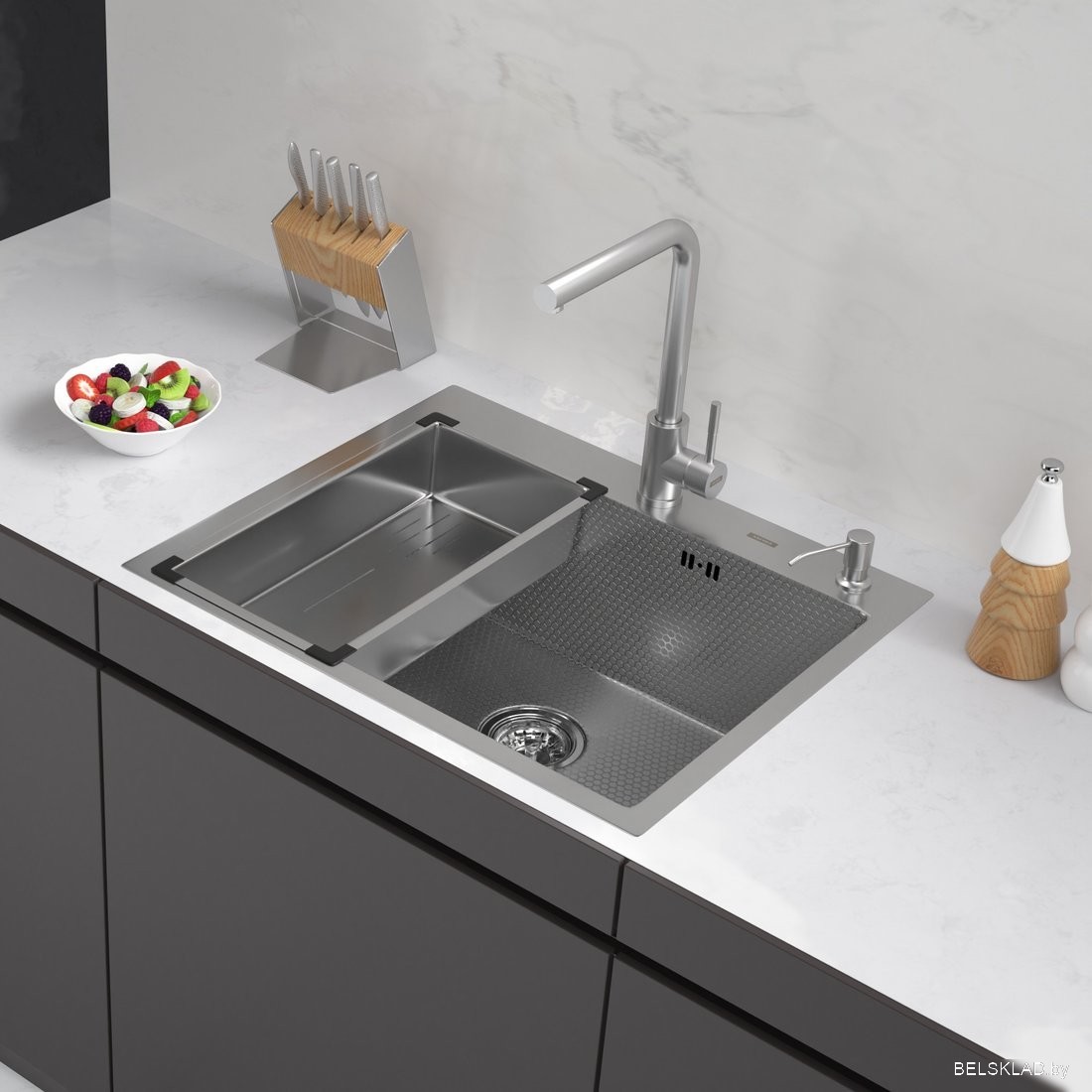 Кухонная мойка ARFEKA Eco AR мойка 600*500, коландер G, дозатор Satin Decor
