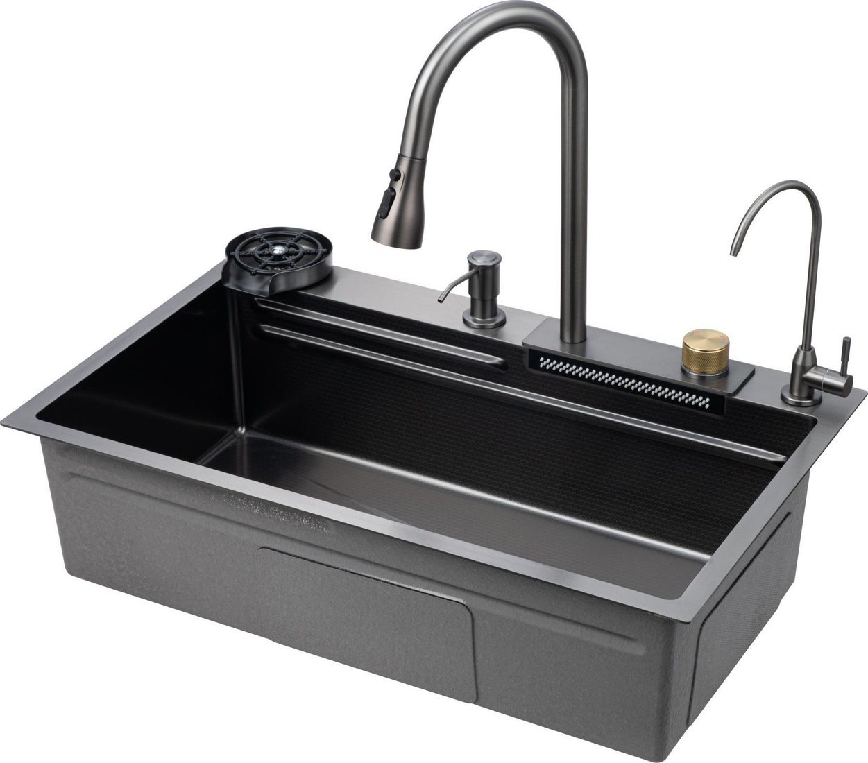 Кухонная мойка Paulmark Kroner-Edge 59 PM775951-GM (вороненая сталь)