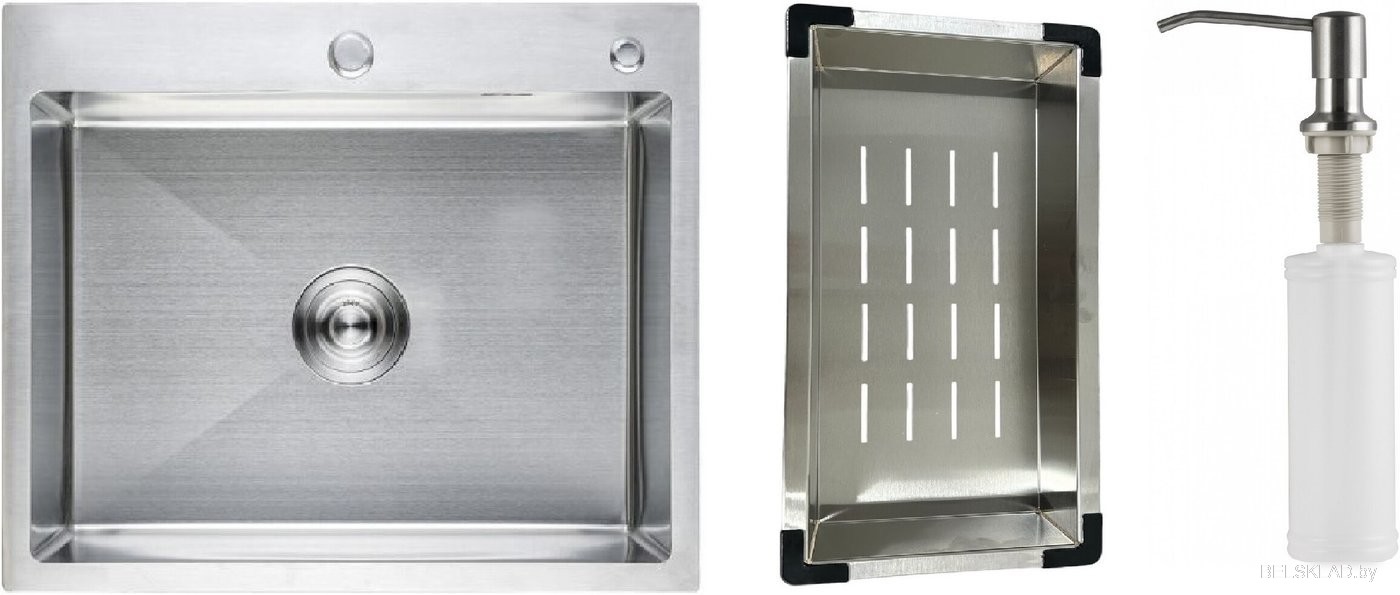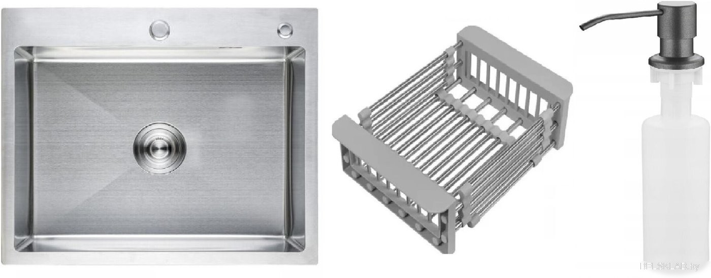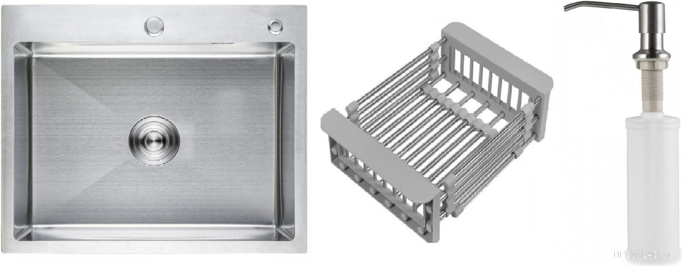 Кухонная мойка Schtoff Best Premium Silver 6050 + коландер KR-1 GREY + дозатор SD-1 SILVER