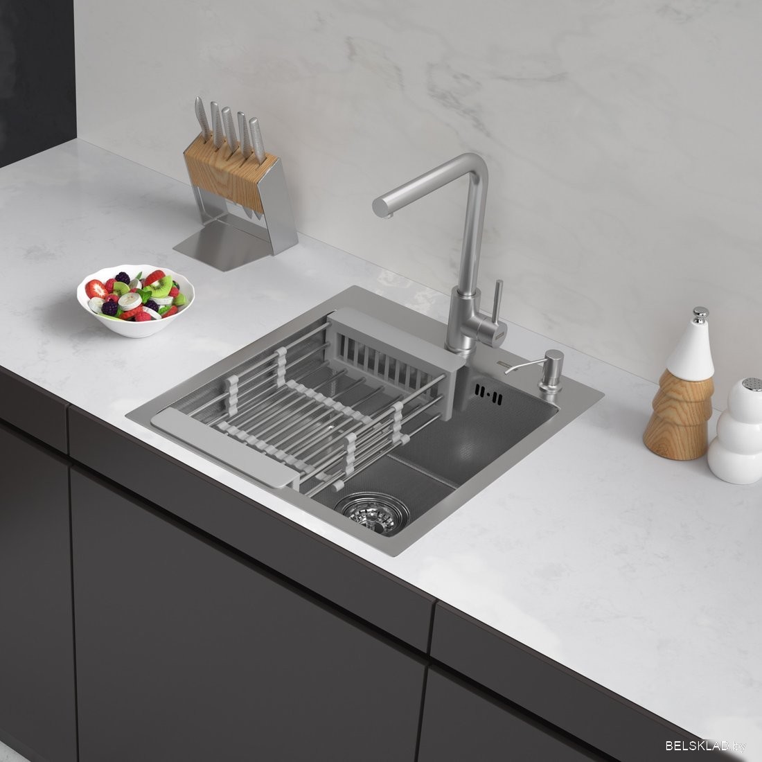 Кухонная мойка ARFEKA Eco AR мойка 450*500, коландер, дозатор SATIN DECOR MILLET GRAINS