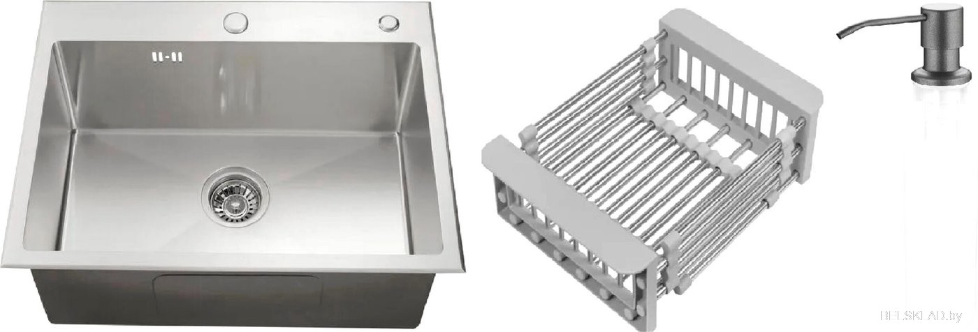 Кухонная мойка Schtoff Best Silver 6050 + коландер KR-1 GREY + дозатор SD-1 GREY