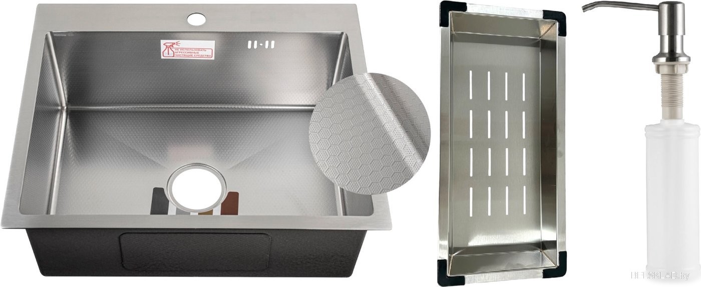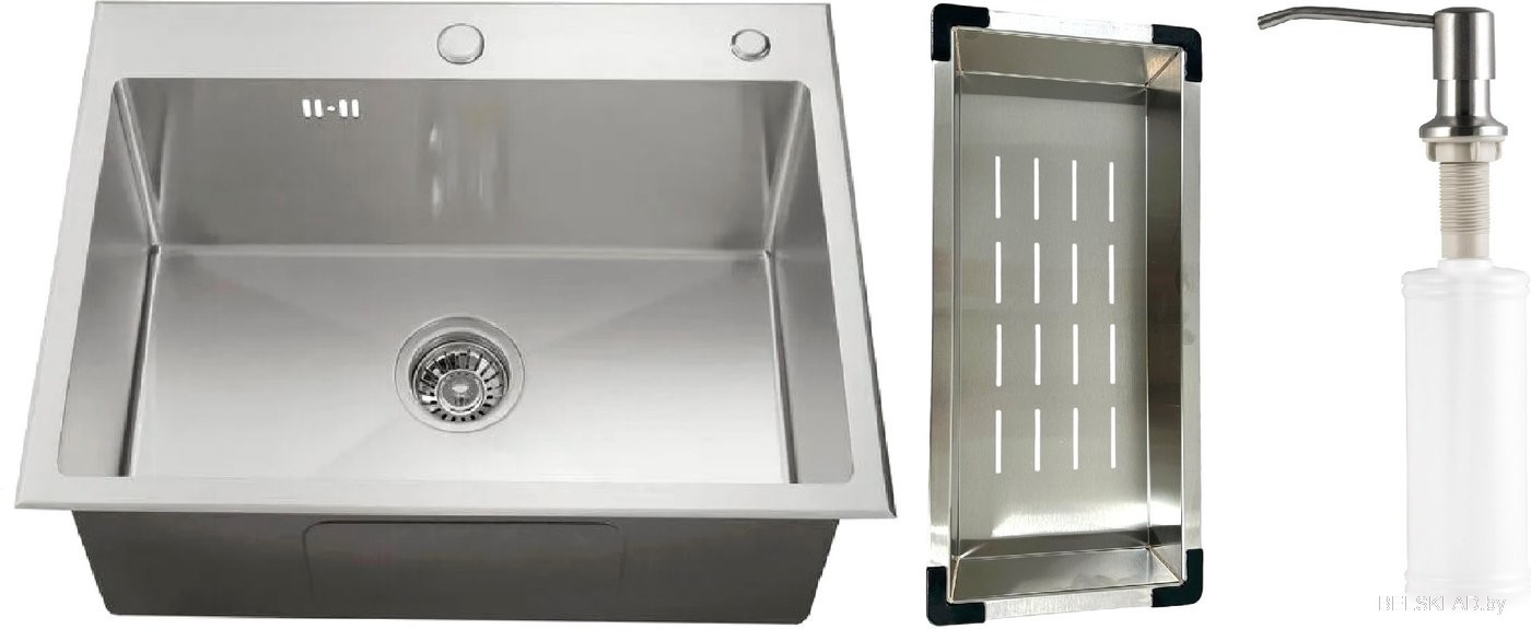 Кухонная мойка Schtoff Best Silver 6050 + коландер металл K-1 BLACK + дозатор SD-1 SILVER