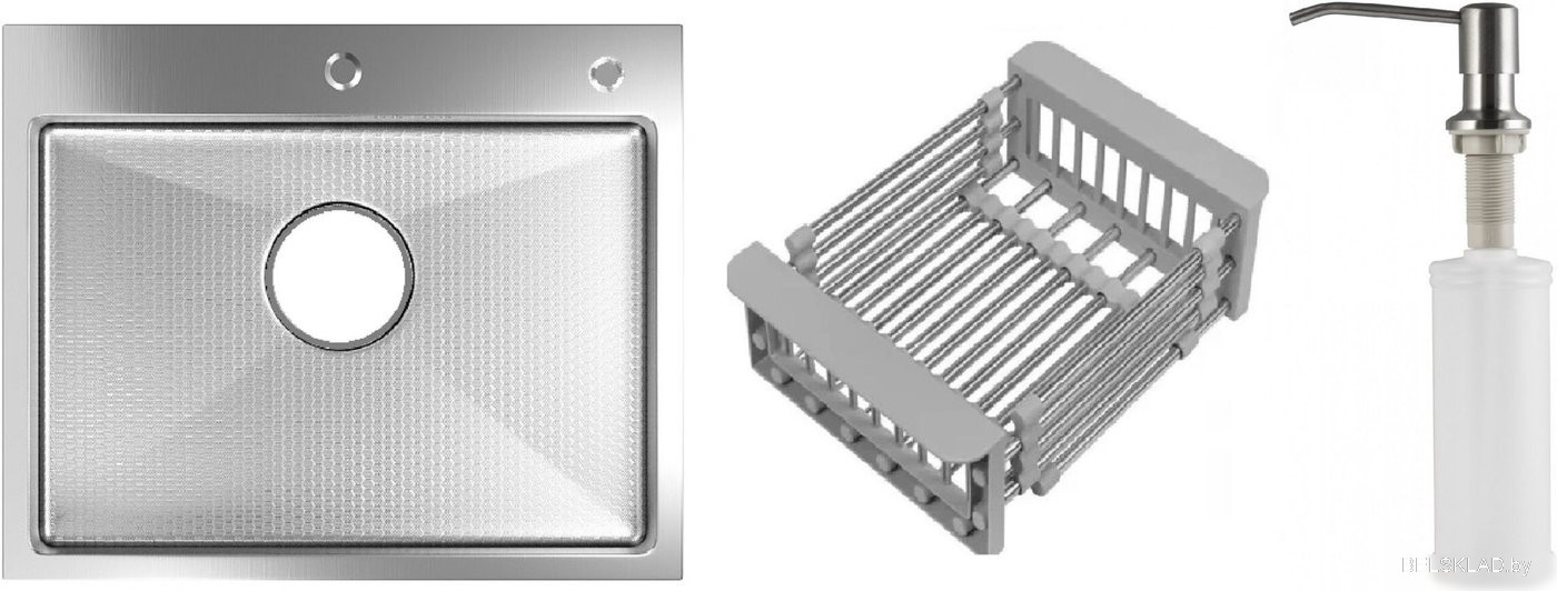 Кухонная мойка Schtoff Best Decor Silver 6050 + коландер KR-1 GREY + дозатор SD-1 SILVER
