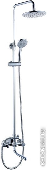 Комплектация: верхний душ, держатель лейки, шланг, смеситель, излив для ванны