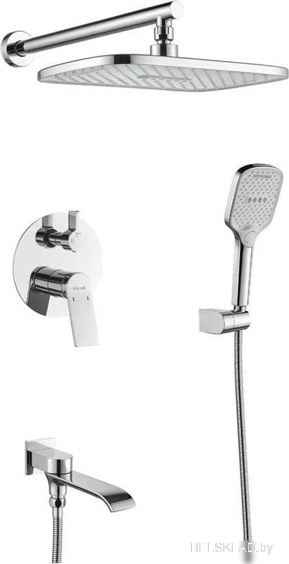 Комплектация: верхний душ, штанга, держатель лейки, шланг, смеситель, гигиенический душ