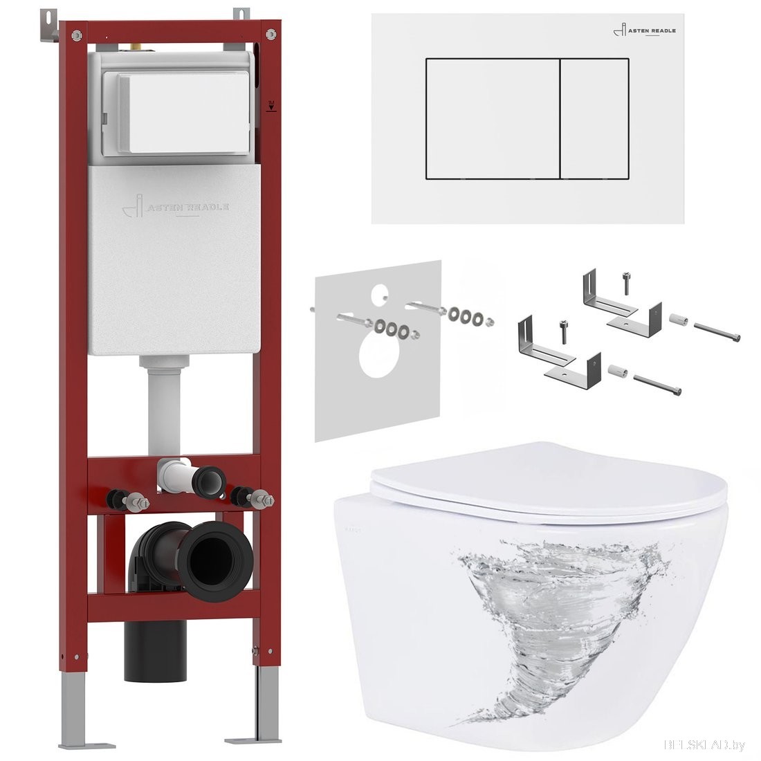 Унитаз подвесной Roxen Antares Tornado в комплекте с инсталляцией Asten Readle Zentralmodul с белой кнопкой