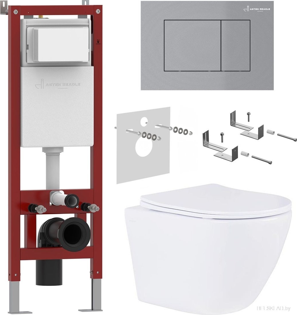 Унитаз подвесной Roxen Antares в комплекте с инсталляцией Asten Readle Zentralmodul AR0601-185M с кнопкой сатин (хром матовый)