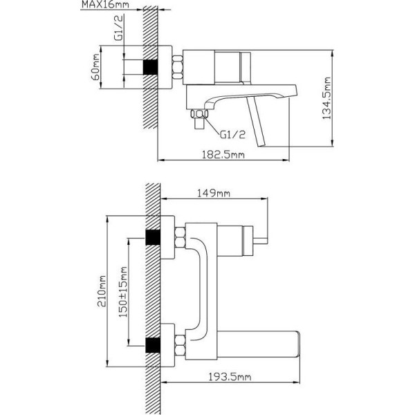Econoce D35 730 EC0732BL (черный) - однорычажный смеситель для ванны и душа, монтаж на стену. Оригинальный Econoce от производителя подтверждённый сертификатом соответствия.