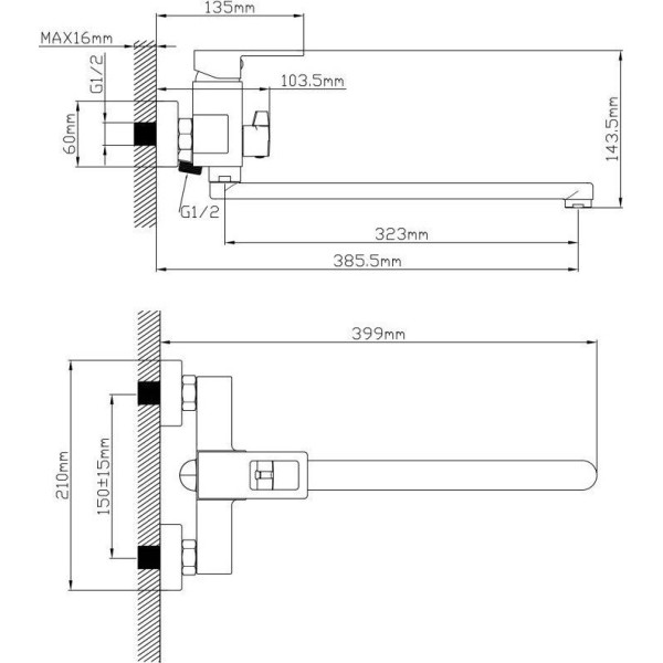 Econoce EC0817BL - однорычажный смеситель для ванны, монтаж на стену. Оригинальный Econoce от производителя подтверждённый сертификатом соответствия.
