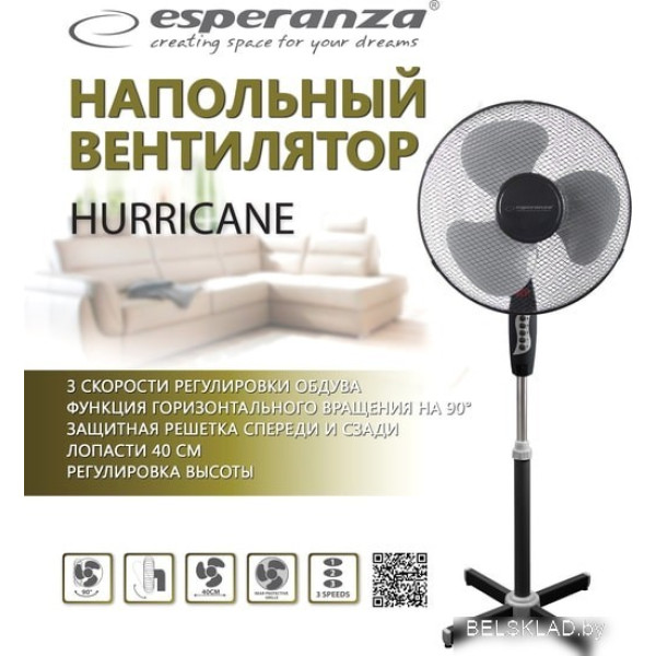 Esperanza EHF001KE - осевой, напольный, мощность 50 Вт, 3 скорости, управление механическое, лопасти 40 см, питание: сеть. Оригинальный Esperanza от производителя подтверждённый сертификатом соответствия.