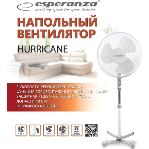 Esperanza EHF001WW - осевой, напольный, мощность 50 Вт, 3 скорости, управление механическое, лопасти 40 см, питание: сеть. Оригинальный Esperanza от производителя подтверждённый сертификатом соответствия.