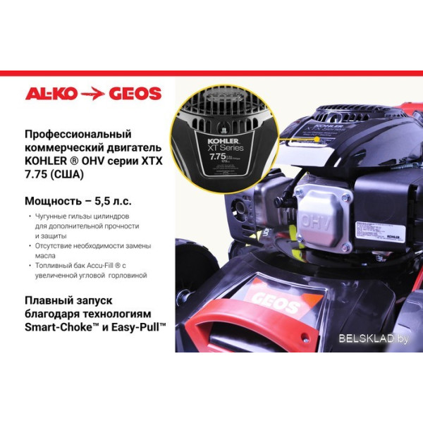 Geos Classic 51 SP-K Plus 213162 - роторная газонокосилка, самоходная, бензиновый двигатель, 3000 Вт, 4.1 л.с., четырехтактный, ширина скашивания: 51 см, жесткий травосборник 65 л. Оригинальный Geos от производителя подтверждённый сертификатом соответствия.