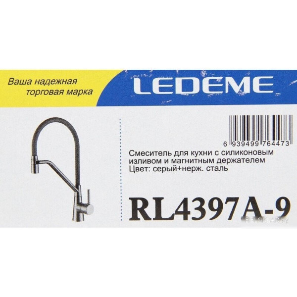 Ledeme L4397A-9 - однорычажный смеситель для кухни, монтаж на раковину или столешницу. Оригинальный Ledeme от производителя Hengchang group CO.LTD Hengchang Rd.Pujiang Country Zhejiang Province China подтверждённый сертификатом соответствия.