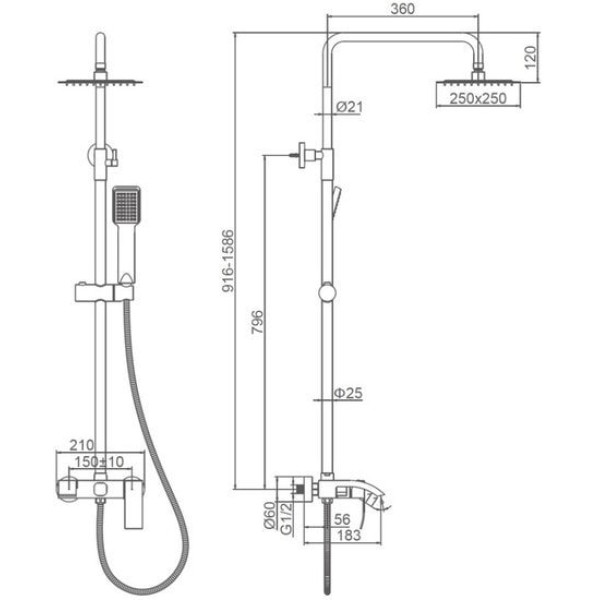 Диаметр (ширина) верхнего душа | 250 мм |