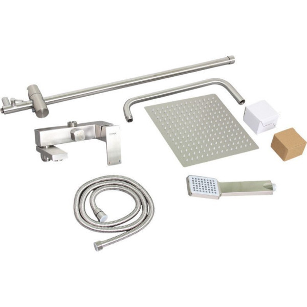 | Комплектация | верхний душ, штанга, ручной душ (лейка), держатель лейки, шланг, смеситель |