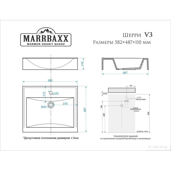 MARRBAXX Шерри V3D1 V003D001 - 58.2x48.7 см, с одной чашей, настенный, искусственный камень, крепление над стиральной машиной. Оригинальный MARRBAXX от производителя подтверждённый сертификатом соответствия.