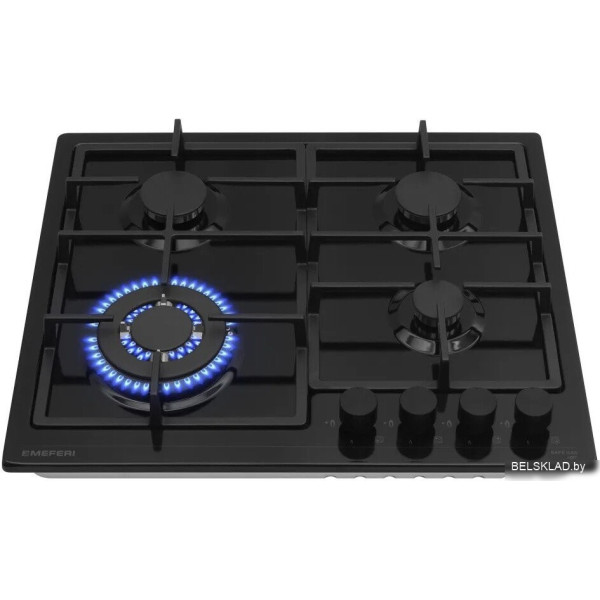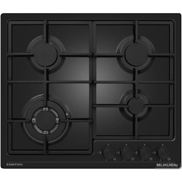 Meferi MGH604BK Light - газовая на 4 конфорки, эмалированная сталь, автоматический электроподжиг, газ-контроль, решетки: чугун, независимая установка, размеры (ШхГ): 58x50 см. Оригинальный Meferi от производителя подтверждённый сертификатом соответствия.