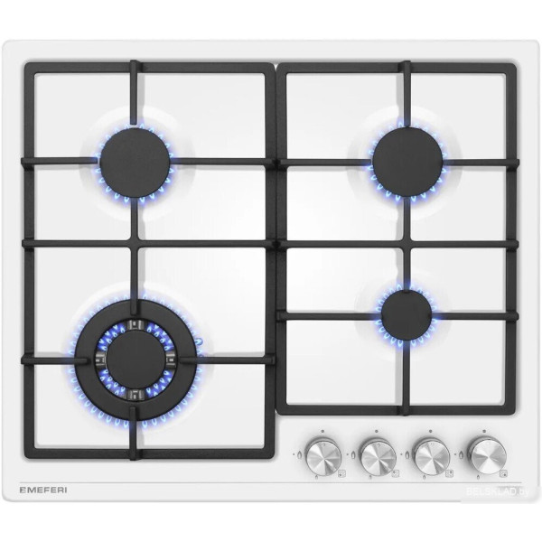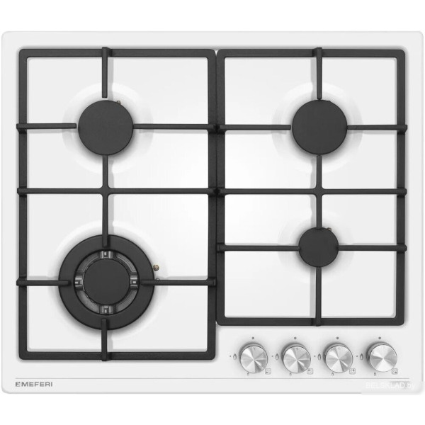 Meferi MGH604WH Light - газовая на 4 конфорки, эмалированная сталь, автоматический электроподжиг, газ-контроль, решетки: чугун, независимая установка, размеры (ШхГ): 58x50 см. Оригинальный Meferi от производителя подтверждённый сертификатом соответствия.