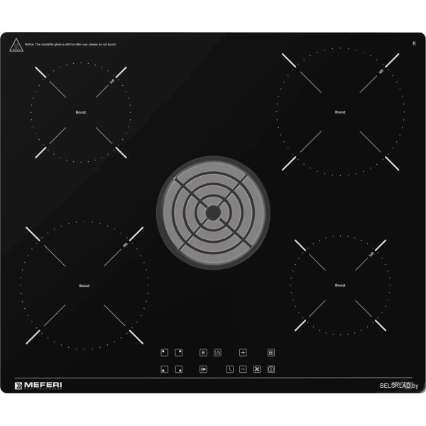 Meferi XSMART60BK Power - индукционная на 4 конфорки, cтеклокерамика, независимая установка, размеры (ШхГ): 60x51 см. Оригинальный Meferi от производителя подтверждённый сертификатом соответствия.