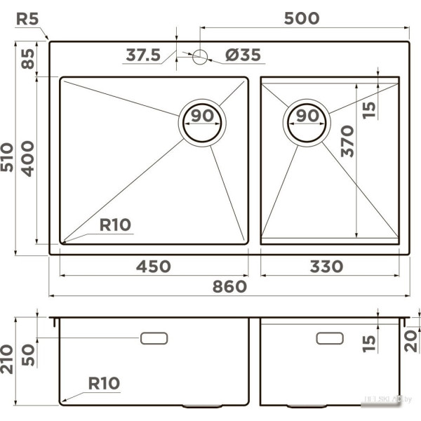 Обратите внимание: на сайте BelSklad.by все цены на Кухонные мойки указаны с НДС, возможен наличный и безналичный расчет. При заказе обязательно сообщайте код товара: 2100129.