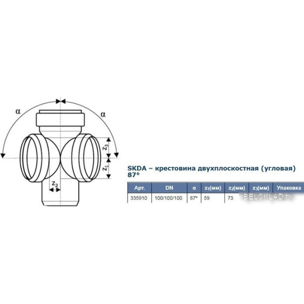 Ostendorf Skolan dB SKDA – крестовина двухплоскостная 100x87° 335910 - фитинг (крестовина двухплоскостная), ПП, типоразмер 100, белый. Оригинальный Ostendorf от производителя подтверждённый сертификатом соответствия.