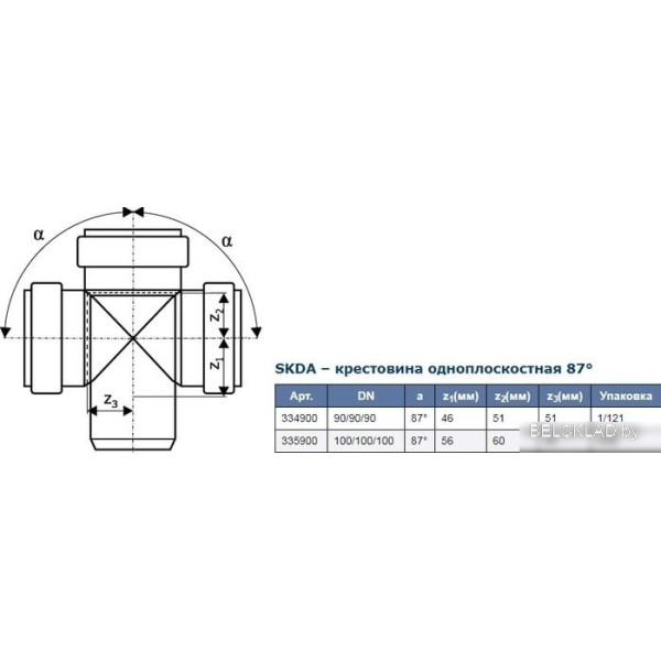 Ostendorf Skolan dB SKDA – крестовина одноплоскостная 100x87° 335900 - фитинг (крестовина), ПП, типоразмер 100, белый. Оригинальный Ostendorf от производителя подтверждённый сертификатом соответствия.