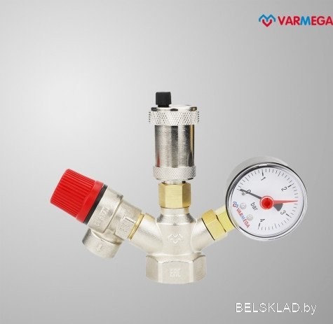 Запорная арматура Varmega Группа безопасности котла 1", 3 бар, латунь, компактная VM16101