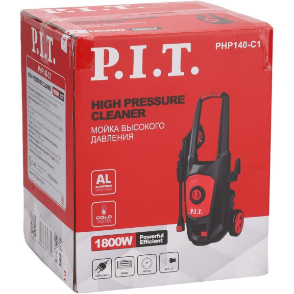 P.I.T. PHP140-C1 - 1800 Вт, 420 л/ч, максимальное рабочее давление: 85 Бар, максимальная температура на входе: 50 °C, длина шланга: 5 м. Оригинальный P.I.T. от производителя подтверждённый сертификатом соответствия.