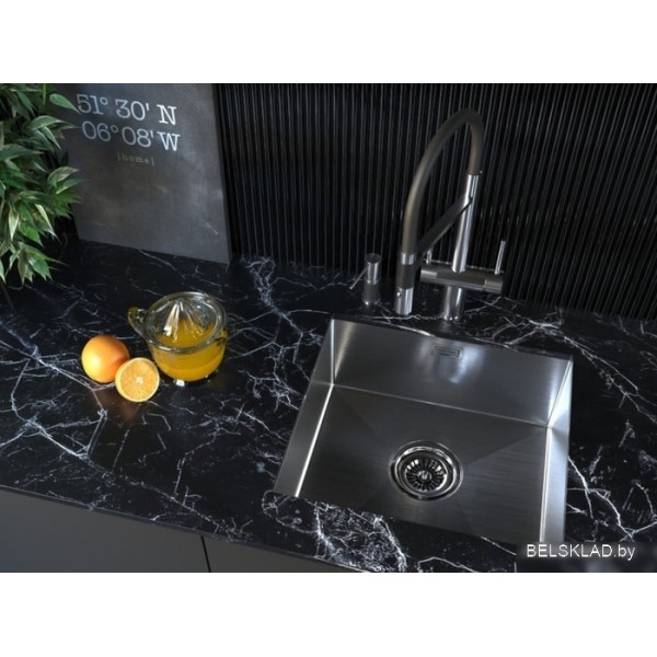 Paulmark Aller 48 Uni PM804844-BS (стальной/брашированная сталь) - врезная на столешницу/врезная под столешницу/врезная вровень со столешницей, нержавеющая сталь, размеры: 48x44 см, глубина чаши: 20 см, в шкаф шириной от 50 см. Оригинальный Paulmark от производителя подтверждённый сертификатом соответствия.